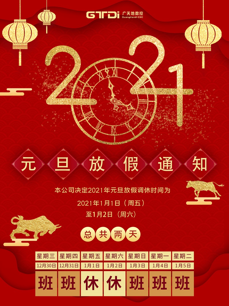廣天地數控2021年元旦節放假時間安排