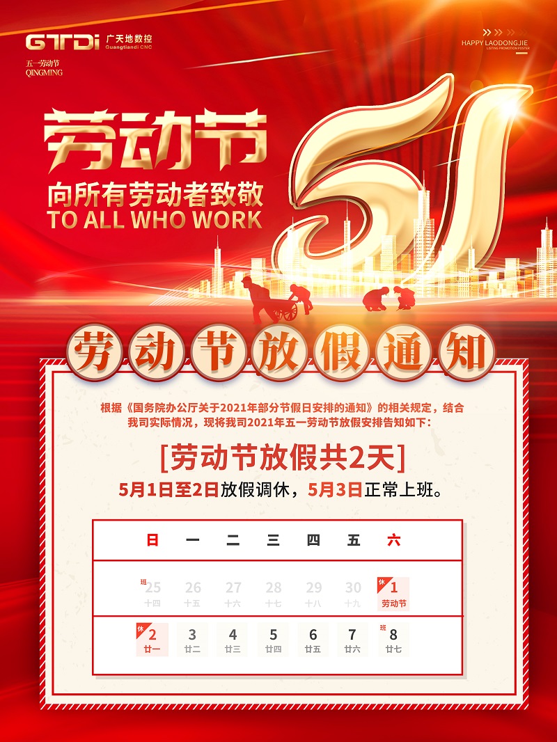 廣天地數(shù)控2021年五一勞動節(jié)放假通知