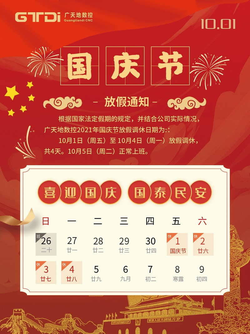 五星紅旗迎風飄揚,我們同慶祖國華誕的榮光,根據國家法定假期的規定,并結合公司實際情況,現對國慶節放假做如下安排: