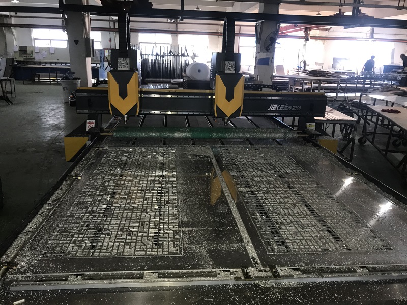 杰克鋁單板雕刻機有型號2040、2060、2065、2011等大幅面工作平臺設備,是專門針對鋁單板加工而設計制造的,具有異性下料、切割、鏤空、浮雕、開槽、倒角、打孔、銑平面等多種功能,加工速度可達到每分鐘5米-20米,實現高效生產,另外它的雕刻精度高,可控制在正負十個絲誤差以內,滿足鋁單板生產加工需求。