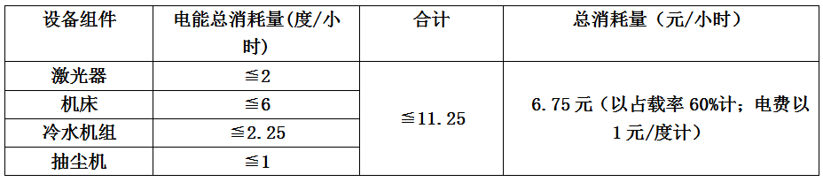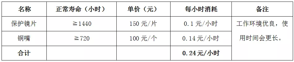 6、光纖激光切割機每小時總計消耗費用:(使用空氣切割)