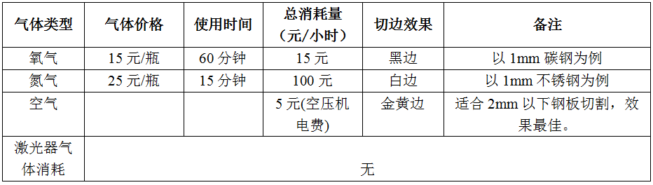 2、切割輔助用氣消耗費用: