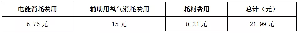 4、 光纖激光切割機每小時總計消耗費用:(使用氧氣切割)