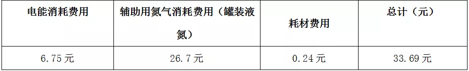 5、光纖激光切割機每小時總計消耗費用:(使用氮氣切割)