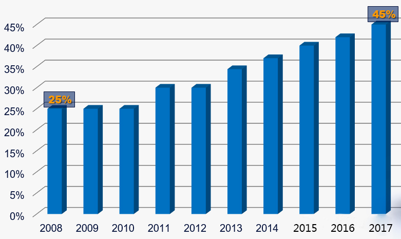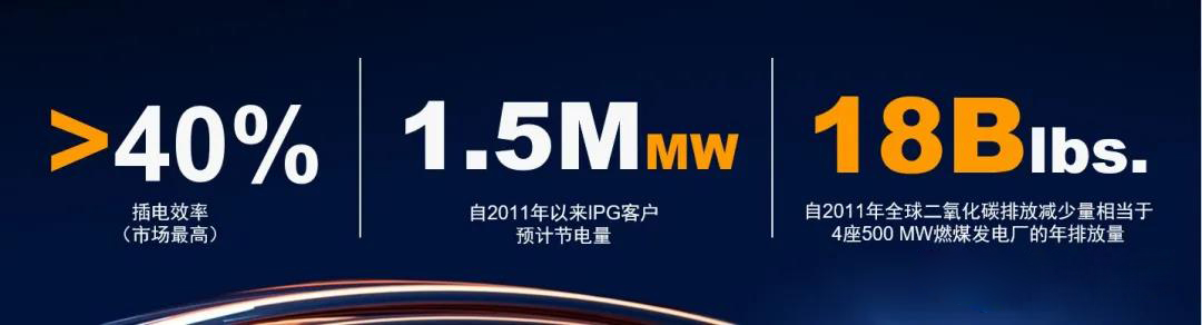 IPG激光器早就實現了40%以上的插電效率(業內普遍水平是20-30%)。這樣意味著,同等功率的激光器可實現更小能耗,更低水冷要求,極大降低激光器對電負載、體積和重量的要求。
