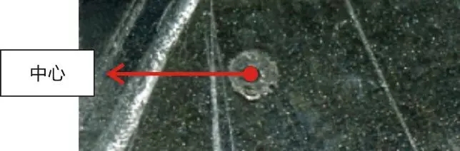 可以調整激光在噴嘴的中心點。調整方法可以在噴嘴出光口位置貼透明膠,然后按點射,取下透明膠,如圖所示。(如光不在中心會造成切割不穩定,切割有毛邊。)