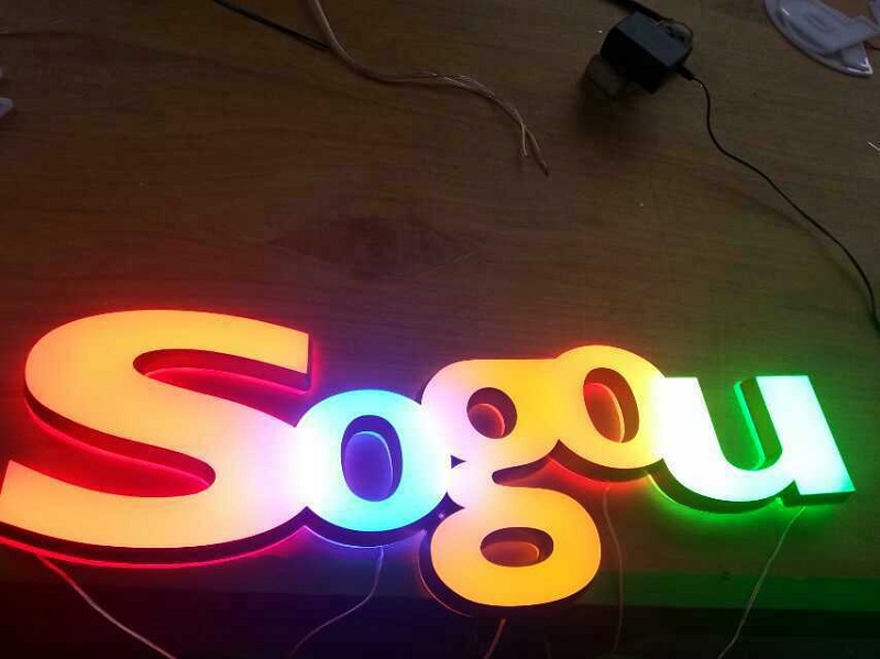 將水晶亞克力板用雕刻機雕刻成型,然后粘貼打磨,在排上LED光源,然后在字的邊上做油漆處理即可。